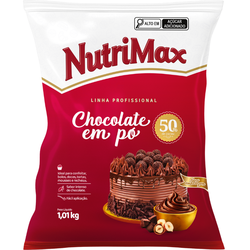 50% de cacau. Solúvel. Sem corante. Não contém glúten.